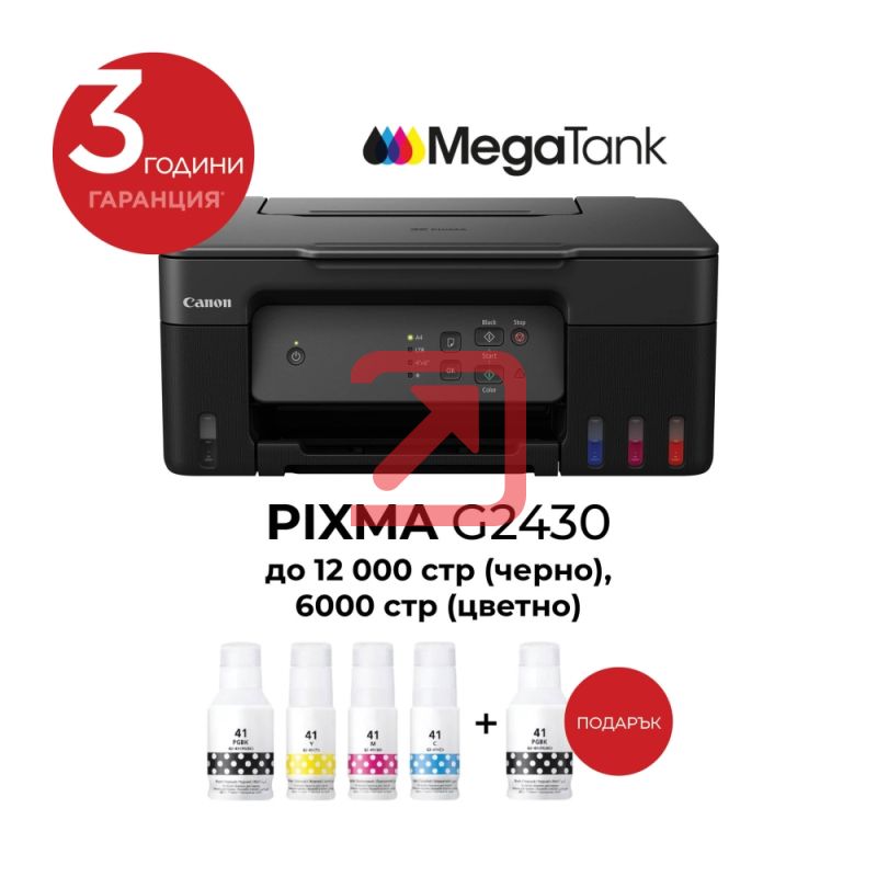 Мастилоструйно многофункционално устройство Canon PIXMA G2430 All-In-One, Black + Canon GI-41 BK