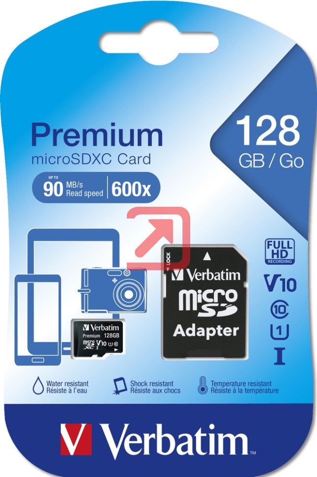Начало Офис техника Информационни носители Карти памет Памет Verbatim Premium micro SDXC 128GB Class 10 (Incl. Adaptor)